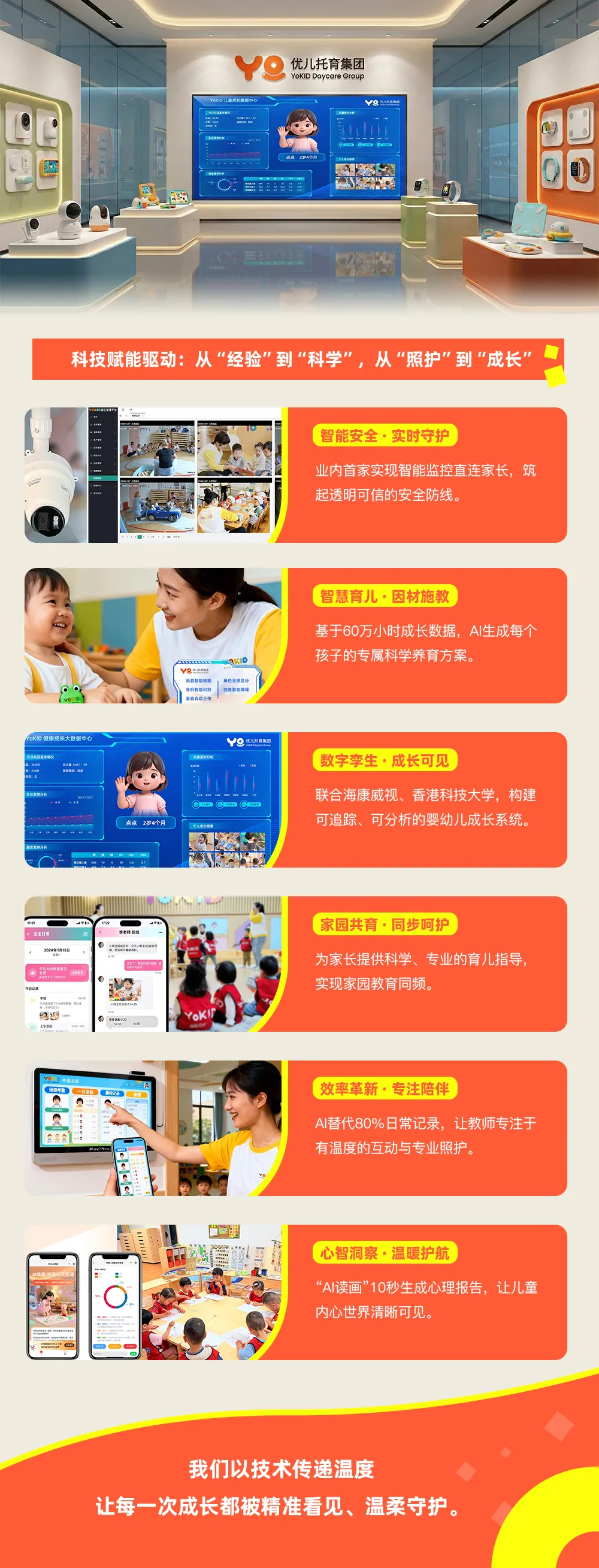 2025年开年,YoKID优儿集团凭借“AI+托育”的创新实践,第18次获得央视CCTV的关注与报道。从研发育儿大模型,到与海康威视、香港科技大学、数联天下达成战略合作,我们逐步构建起“剑桥心理学前沿理论与AIoT智能技术”双引擎驱动的智慧育儿解决方案,逐步落地实践于全国优儿托育园,赋能涵盖“托幼一体化、社区托育、企业托育、医育结合及普惠托育”等多种模式的百家园所,推动育儿服务从传统的“经验驱动”全面转向“智能科学驱动”。