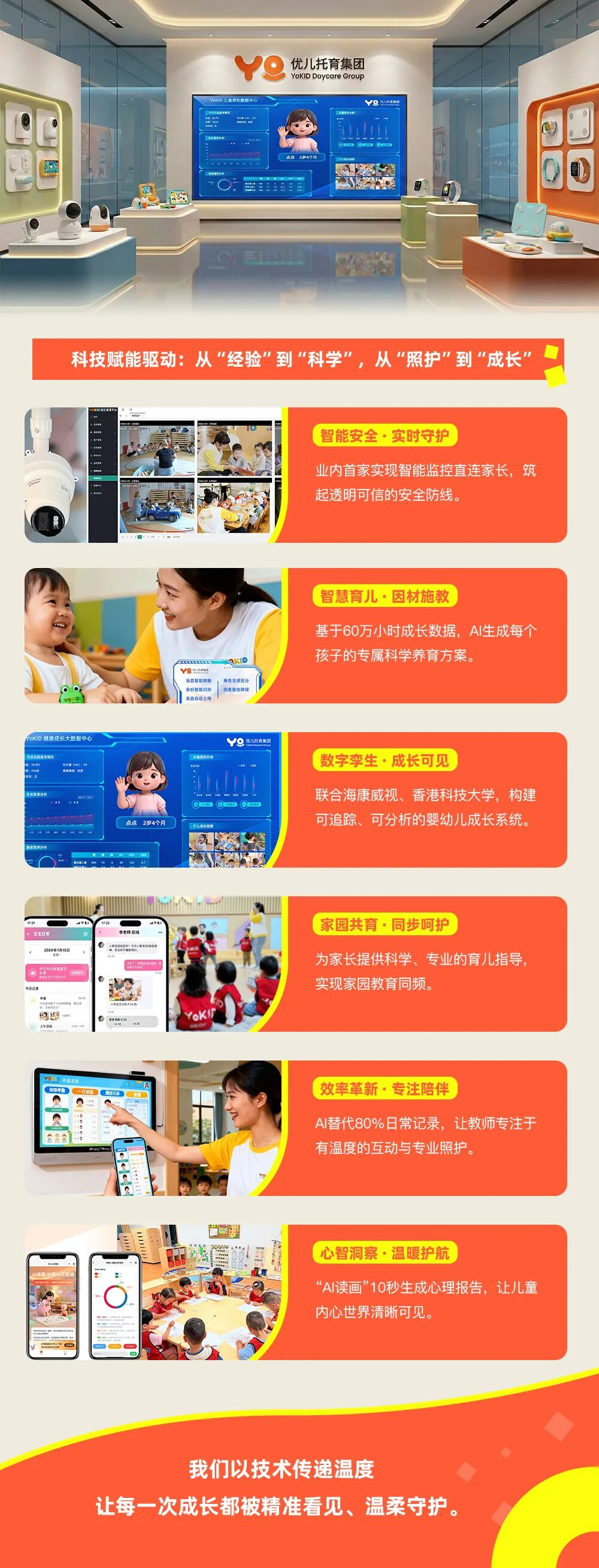 优儿集团作为数智托育行业的领军者,紧扣政府、机构与家庭三大核心需求,率先构建 “硬件 + 软件 + AI 算法 + 数智运营” 一体化产品生态,稳居国内AI托育行业头部阵营。依托与香港科技大学、海康威视、数联天下等顶尖学术机构与科技企业的深度合作,集团将 AI 技术全面落地托育全场景,打造出覆盖智慧照护、科学养育、心智成长、家园共育、人才培养的全链路“数智托育服务系统”,通过AIoT设备实时记录孩子行为、健康与情绪等数据,结合AI智能分析,精准生成个性化育儿方案,并实现家园信息智能互通,构建数据驱动、智能协同的科学共育新范式。